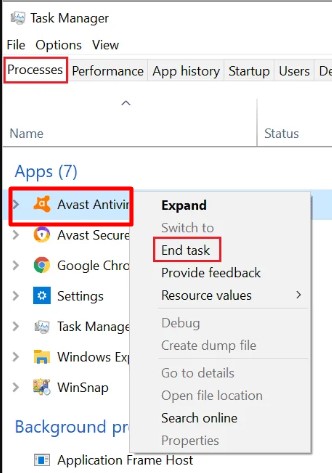 3. 右鍵單擊 Avast 防病毒程序圖標並查找關於彈出菜單上的選項。