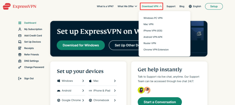 - 登錄並下載並將ExpressVPN應用程序安裝到您的設備上。