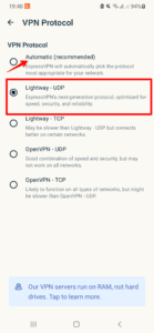 - 前往VPN協議>光為UDP。或者,選擇“自動的”以獲得最佳 VPN 確定的協議。