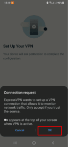- 點擊 ”好的” 接受連接請求並啟動 VPN。