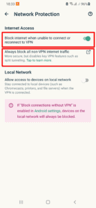 - 切換“無法連接或重新連接 VPN 時阻止互聯網“ 在。