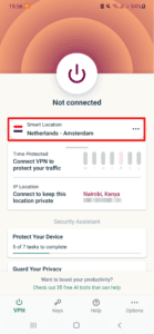 - 單擊大電源按鈕自動連接到最佳位置您附近的服務器。