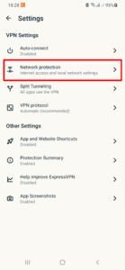 - 在下面 ”VPN 設置,”轉到“網絡保護”。