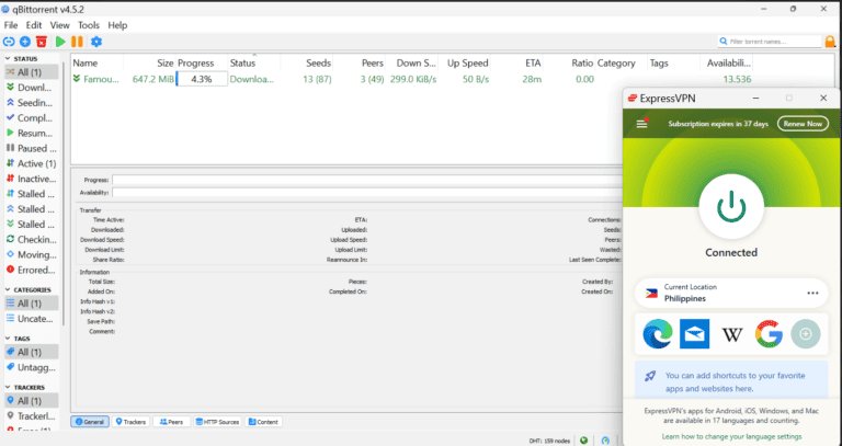 同樣地,所有 ExpressVPN 服務器均支持 P2P 並針對種子下載進行了優化,菲律賓服務器實現了最高的種子下載速度和最穩定的連接。