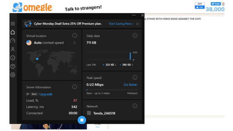 鑑於其相對較快的服務器和 P2P 支持,Hotspot Shield 是 Omegle 視頻通話的絕佳選擇。然而,免費版本有數據限制,並且帶有廣告的服務器較少,因此不適合長時間的視頻通話。