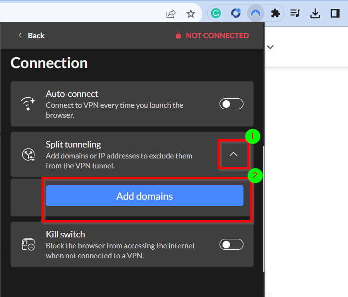 - 單擊“”旁邊的切換按鈕分裂隧道“ 進而 ”添加域名”。