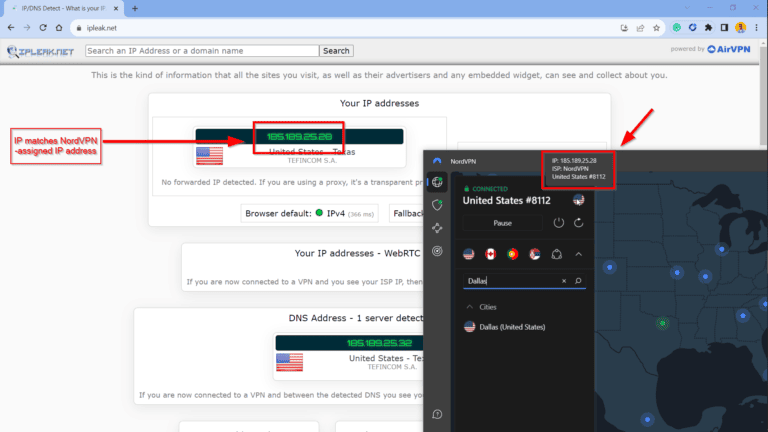 - 運行 IP 洩漏測試以確認您正在使用 VPN 分配的 IP 地址進行瀏覽。如果您從達拉斯轉機,這一點很重要。