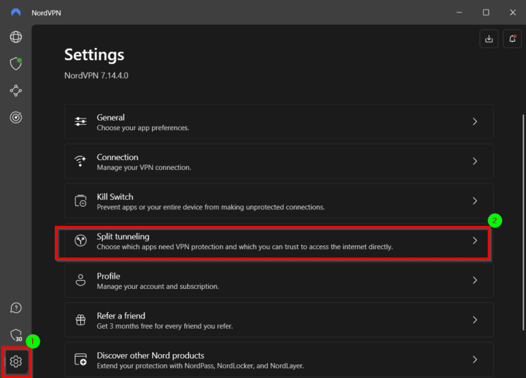 請按照以下步驟為一些應用程序啟用 NordVPN Texas 服務器,而其他程序則繞過 VPN 的加密和 IP 地址更改: