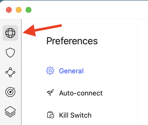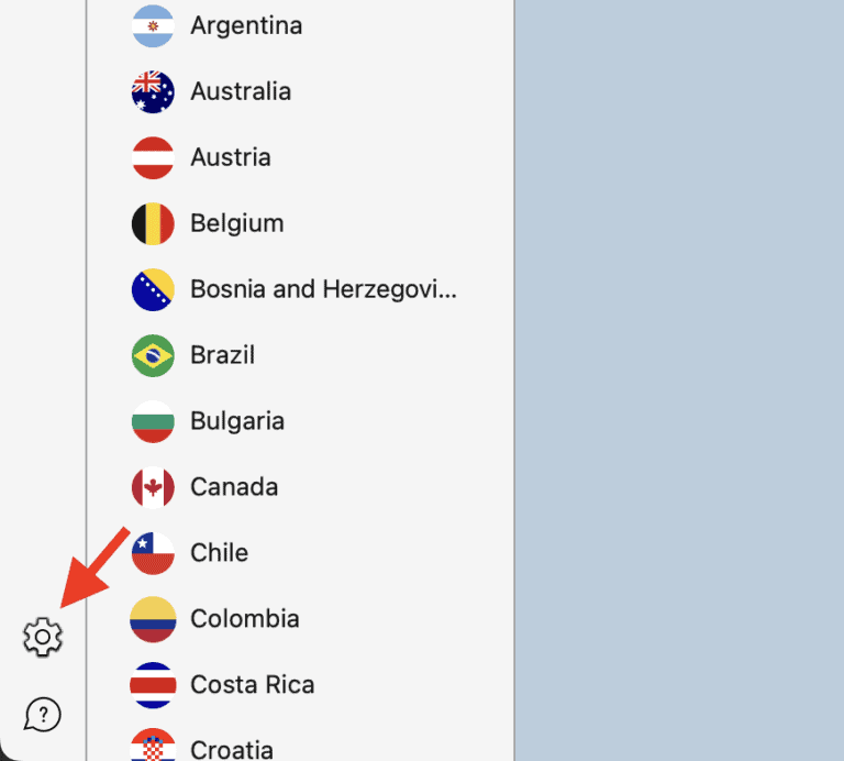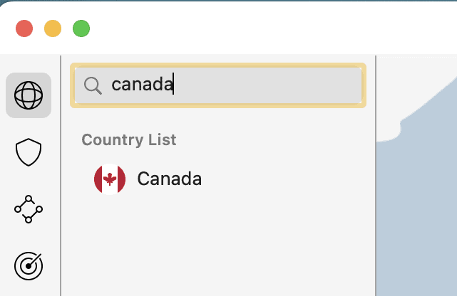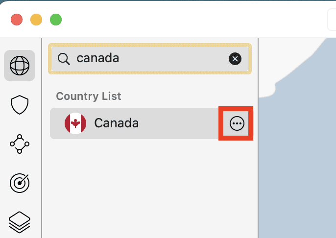 - 單擊地球圖標,選擇要連接的位置並單擊它。