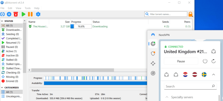 我與我的Qbittorrent客戶端一起測試了NordVPN的P2P服務器的性能。