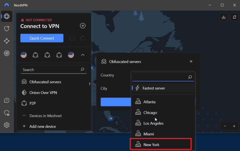- 單擊服務器連接到 NordVPN 的 380 多個紐約服務器之一。