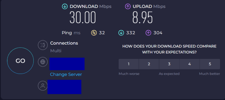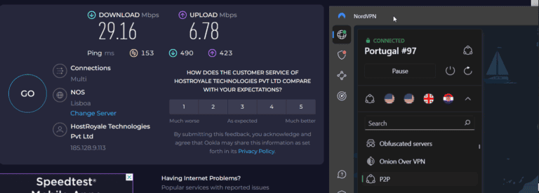 例如,我連接到自動分配的 NordVPN P2P 服務器(我連接的是葡萄牙)並記錄了 29.16 Mbps。這僅導致 0.84 Mbps(或 2.8%)的速度下降。