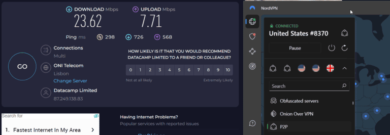 這證明了 NordVPN 的服務器速度,因為 VPN 繞過了 ISP 的限制,即使在混淆的服務器上也是如此!
