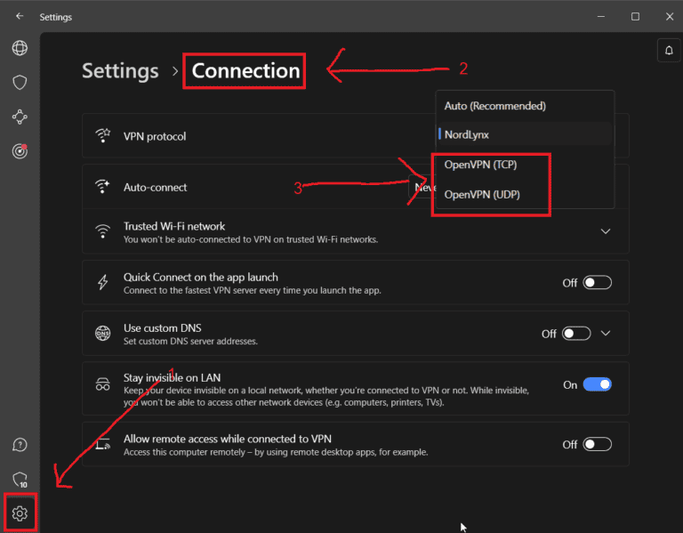 在一些測試中,我無法通過兩種 OpenVPN 協議連接到我的 PC 上的 NordVPN 模糊服務器。不過,我可以在移動設備 (iOS) 上進行連接,但首先是 TCP,幾分鐘後 UDP 才允許訪問。