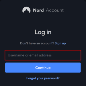 - 安裝 NordVPN 應用程序並使用您的憑據(用戶名和密碼)登錄。