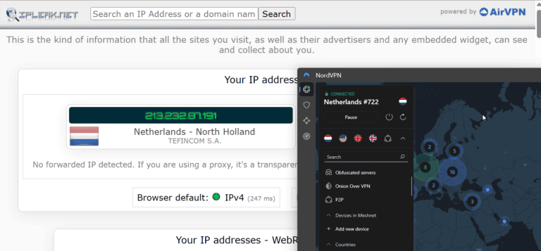 - 通過測試洩漏來確認您的 NordVPN 連接是安全的。訪問www.ipleak.net並確認您的 NordVPN IP 與洩漏測試站點上顯示的 IP 匹配。