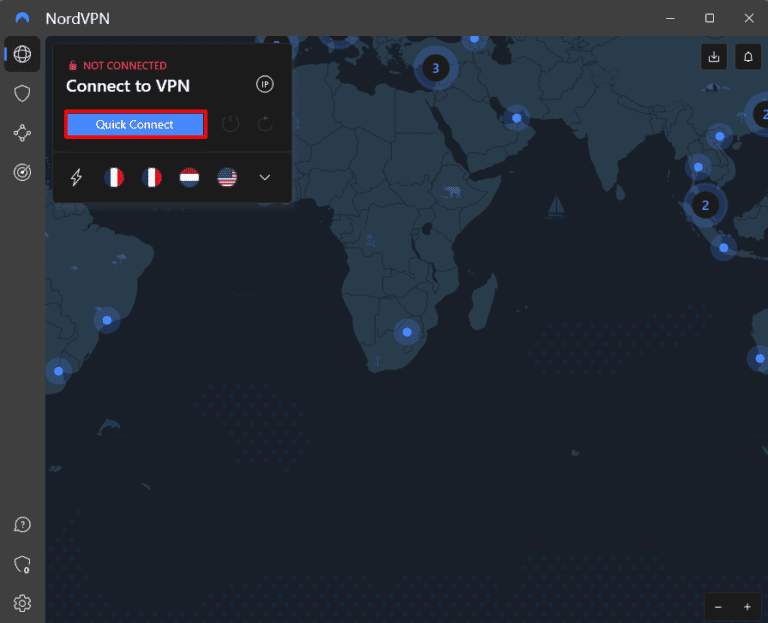 要連接到最近/最快的服務器,請點擊“快速連接“ 按鈕。