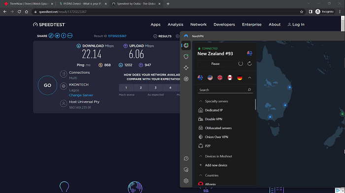 在某些情況下,NordVPN 甚至比我的基本 ISP 速度更快,表明它可以繞過 ISP 限制。