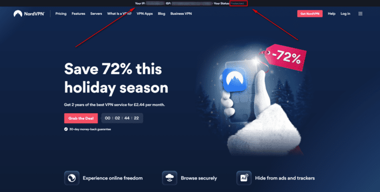 - 您可以通過前往NORDVPN網站並在標題區域查找一條消息,上面寫著“您的狀態:受保護。 ”