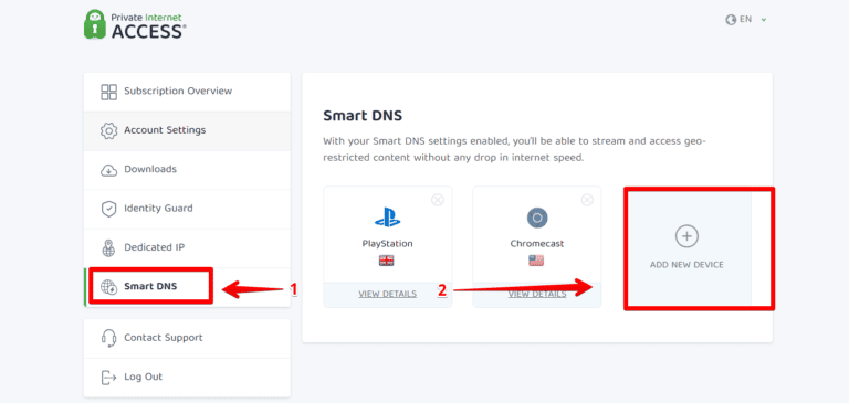 Private Internet Access 的智能 DNS 使您可以輕鬆地在智能電視上設置 VPN 服務。或者,您可以在智能電視或遊戲機連接到的兼容路由器上安裝 PIA。