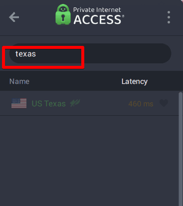 - 訪問 PIA 服務器列表並連接到您的首選服務器位置。我連接到德克薩斯州的服務器。