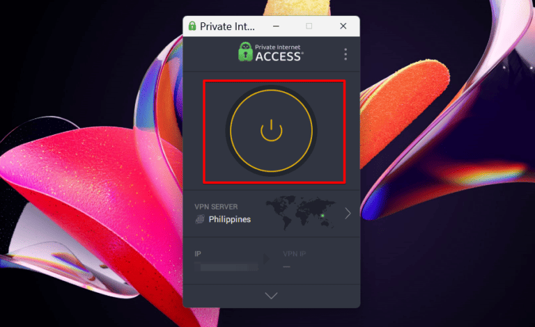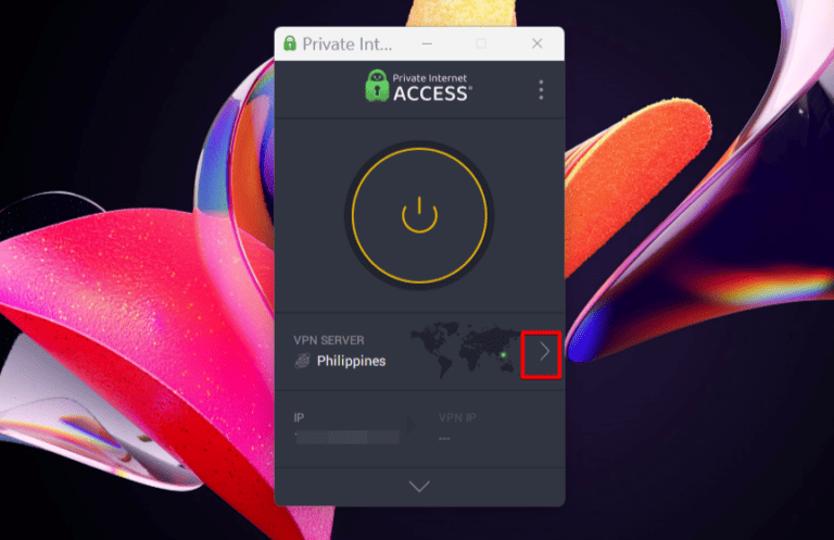 - 連接到適當的 PIA VPN 服務器位置。我建議單擊電源按鈕以獲取附近的服務器以進行瀏覽和保護隱私。