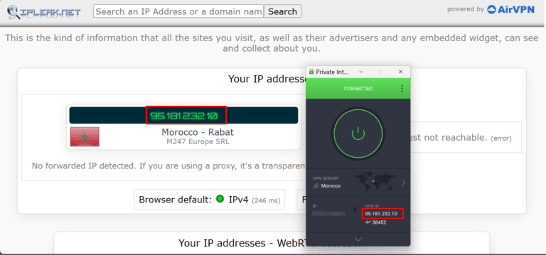 - 通過檢查是否存在洩漏來確保您的 PIA VPN 連接安全www.ipleak.net。您分配的 PIA IP 地址應與洩漏測試站點上的 IP 地址匹配。