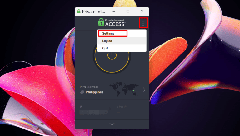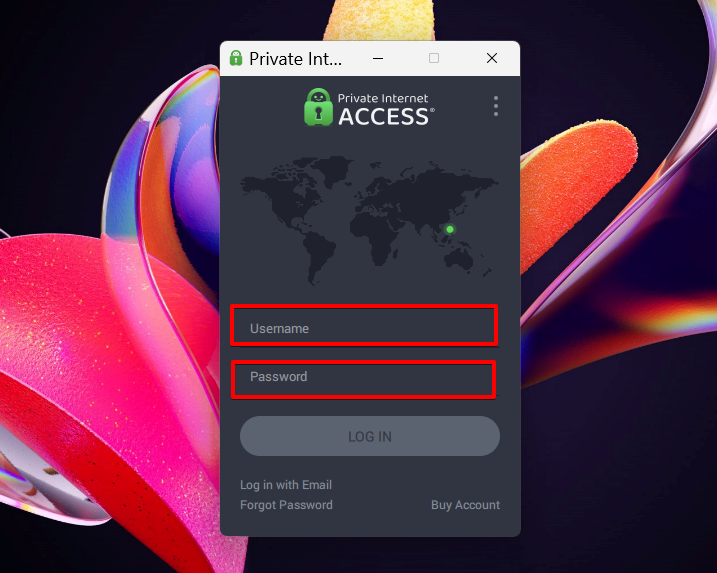 - 使用您的憑據安裝、啟動並登錄 PIA Windows 應用程序。