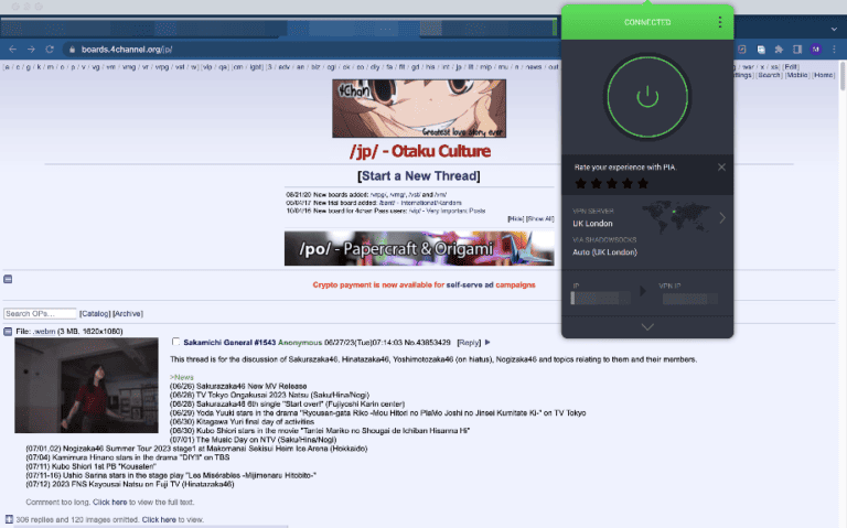 在其他情況下,如果您連接的 IP 地址因惡意攻擊者使用 4chan 來逃避禁令而被平台阻止,則您在使用 PIA 時可能無法訪問 4chan。但是,如果是這種情況,您可以連接到不同的服務器以獲取另一個 IP 並重新登錄到 4chan。