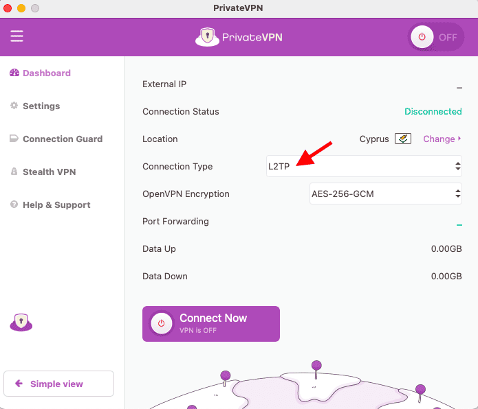 如果你優先考慮速度高於安全,您還可以從 PrivateVPN 的默認協議(OpenVPN)切換到 L2TP。