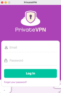 - 啟動 PrivateVPN 應用程序並使用您的帳戶憑據登錄。