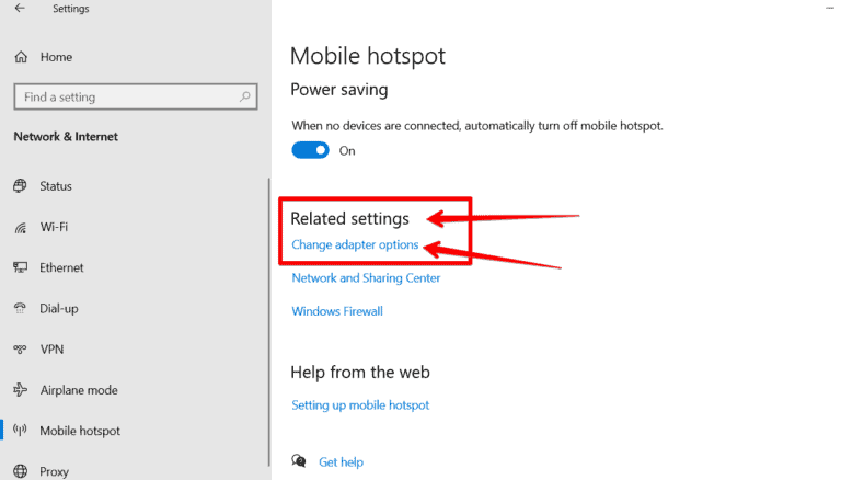 - 點擊 ”更改適配器選項“ 在下面 ”相關設置”。