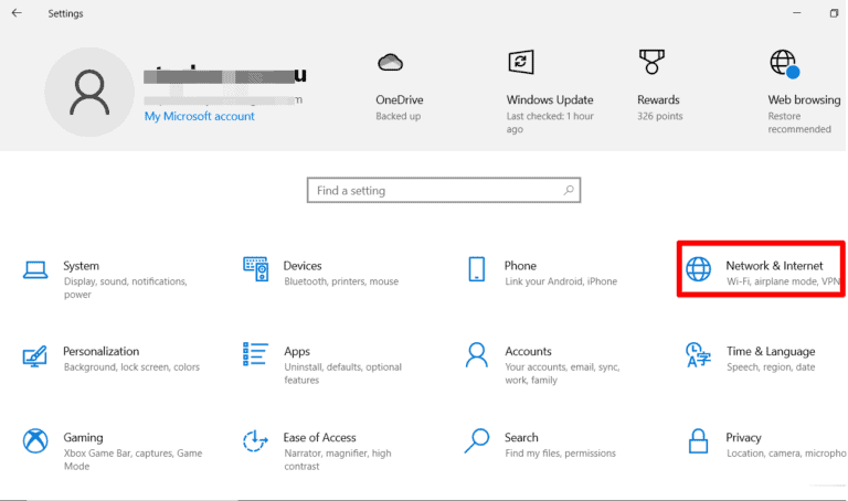 - 轉到您的電腦設置,然後選擇“網絡與互聯網”。