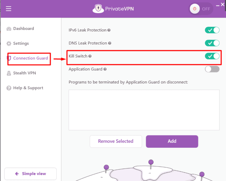 - 轉到“連接衛士,”然後啟用終止開關按鈕防止 VPN 突然斷開時您的 IP 洩露。