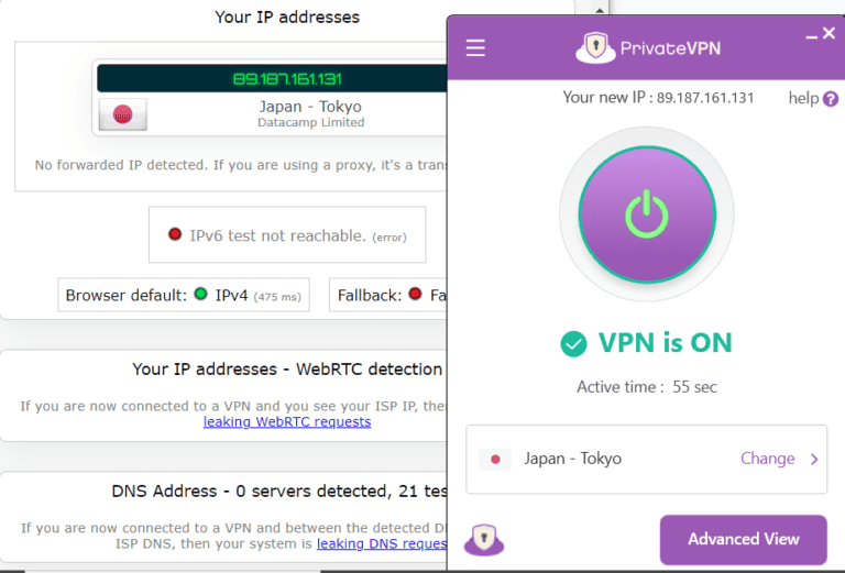 PrivateVPN 在日本提供靜態和動態端口轉發。