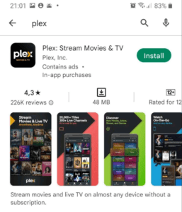 - 前往移動設備的應用商店並下載並安裝 Plex。