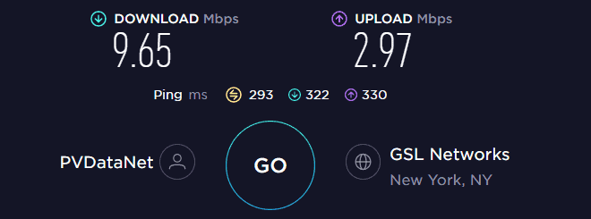 如果您將我的基本下載速度與連接到紐約服務器時的下載速度進行比較,您會發現有 24% 的差異。在將 PrivateVPN 與 Plex 結合使用時,這種差異不足以影響顯著變化。