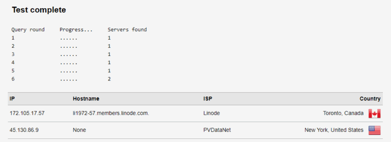 啟用這些功能後,我在網絡瀏覽器中打開 dnsleaktest.com 並運行“擴展測試”。