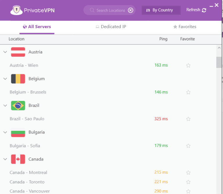 和200+服務器, PrivateVPN 確保您在 Roobet 允許的國家/地區擁有服務器,例如阿根廷、哥斯達黎加、愛爾蘭、加拿大和巴西。值得慶幸的是,服務器分佈在盡可能多的位置,以最大限度地減少服務器過度擁擠和連接速度減慢。