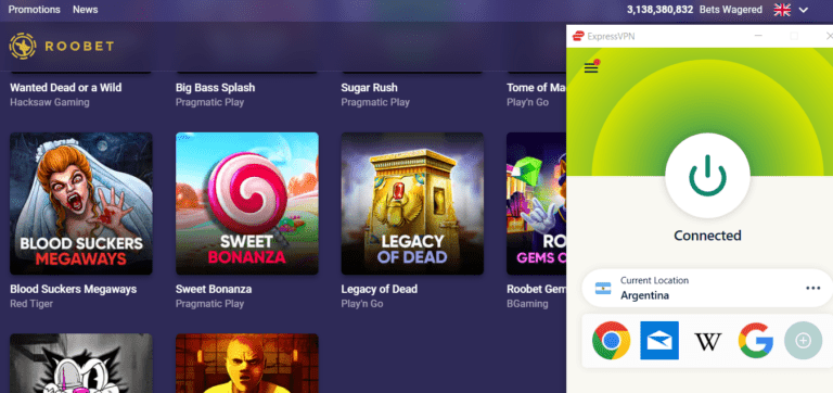- 連接到某個服務器Roobet 允許的位置。我連接到阿根廷-布宜諾斯艾利斯 VPN 服務器。