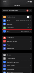 - 返回主設置儀表板。選擇 ”VPN”。