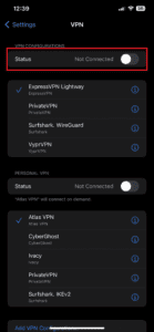 - 轉到“VPN 連接”。選擇 ”配置VPN”。
