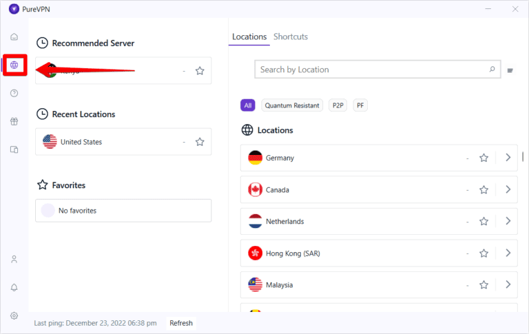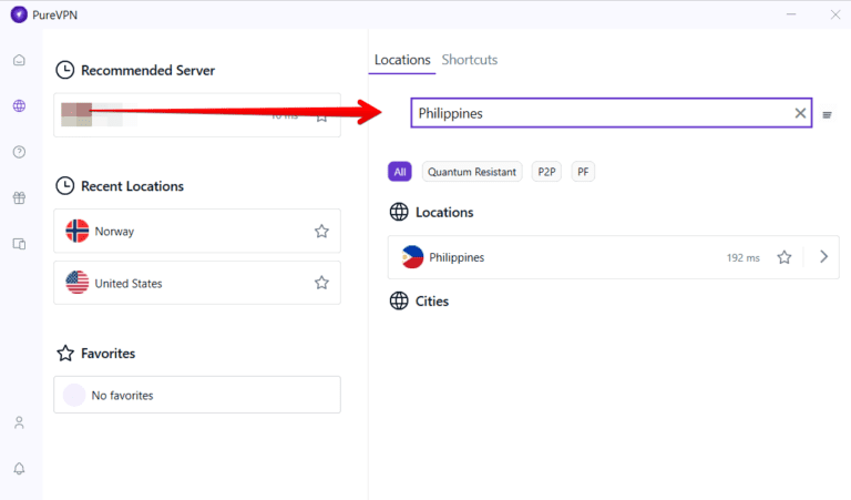 在 PureVPN 上獲取菲律賓 IP 地址很容易,因為它在該地區有一個服務器。這是分步指南: