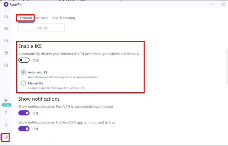 - 激活 PureVPN 終止開關,以便 DraftKings 管理員不會訪問您的真實 IP 地址、阻止您的投注或在 PureVPN 連接斷開時沒收您的獎金。前往設置 > 常規 > 啟用 IKS。