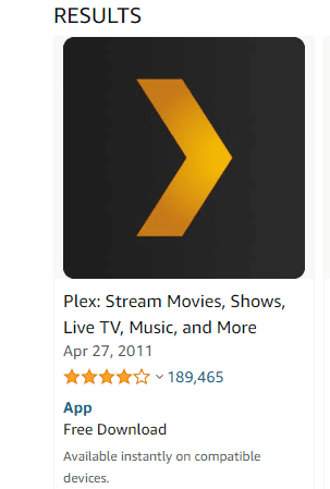 - 從 Amazon App Store 將 Plex 應用程序下載到您的 FireStick 設備。