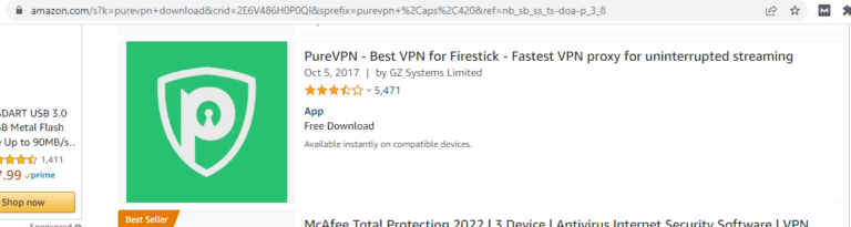 - 從 Amazon 應用程序商店下載並安裝 PureVPN 的 Amazon Fire TV 應用程序。