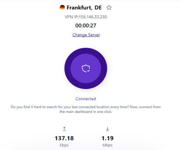 用於解鎖 Pokerstars 的最佳 PureVPN 服務器是法蘭克福,數據中心服務器,我經歷過的地方無滯後。