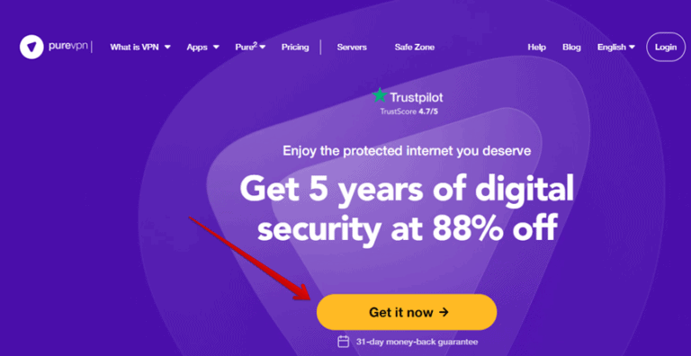 - 發射PureVPN官方網站從您的 PC 瀏覽器。點擊立即獲取。