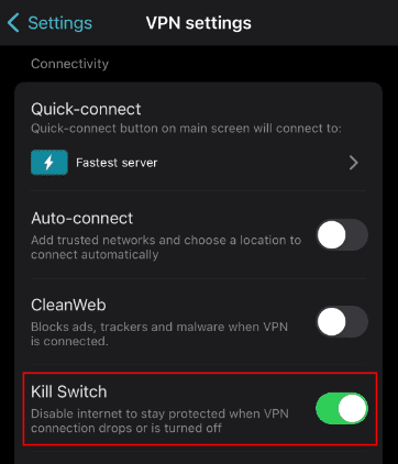 如何在 iOS 上使用 Surfshark 的 Kill Switch?