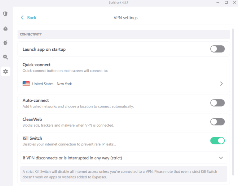 在 Surfshark 的 Windows 應用程序上啟用 VPN 終止開關非常簡單。